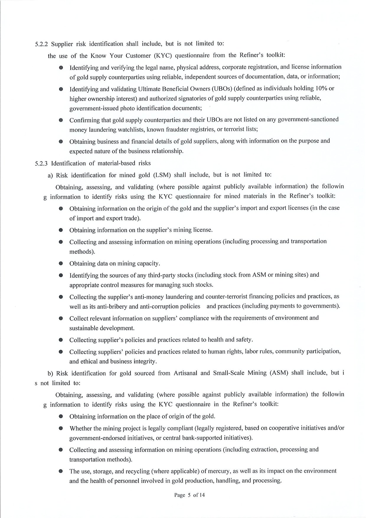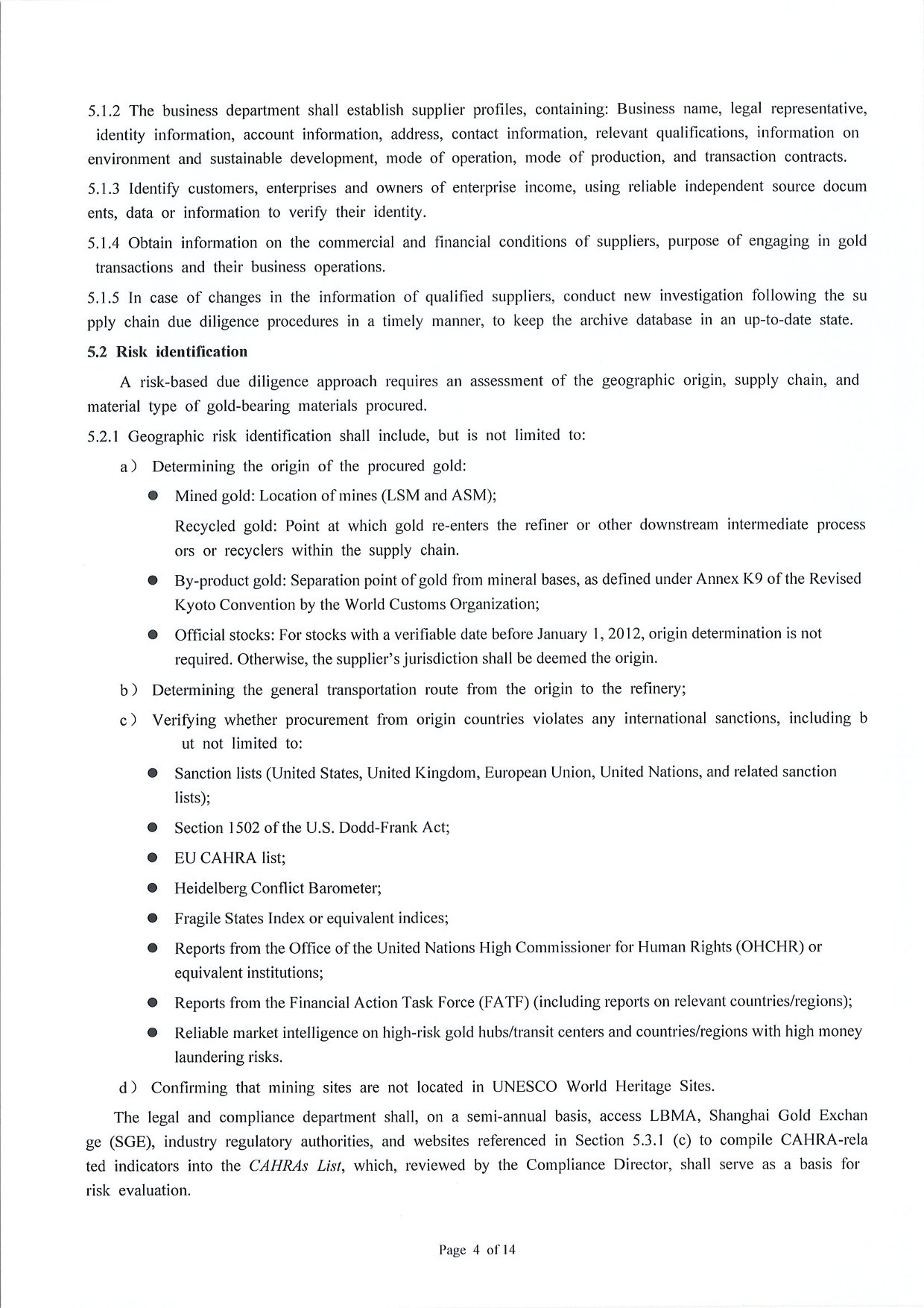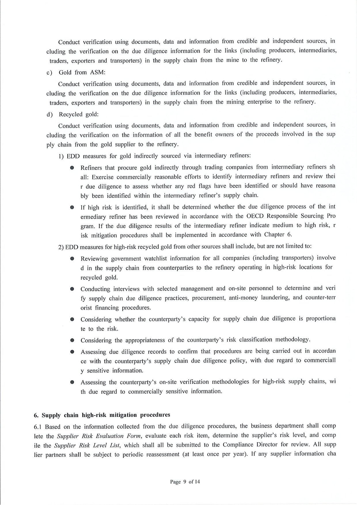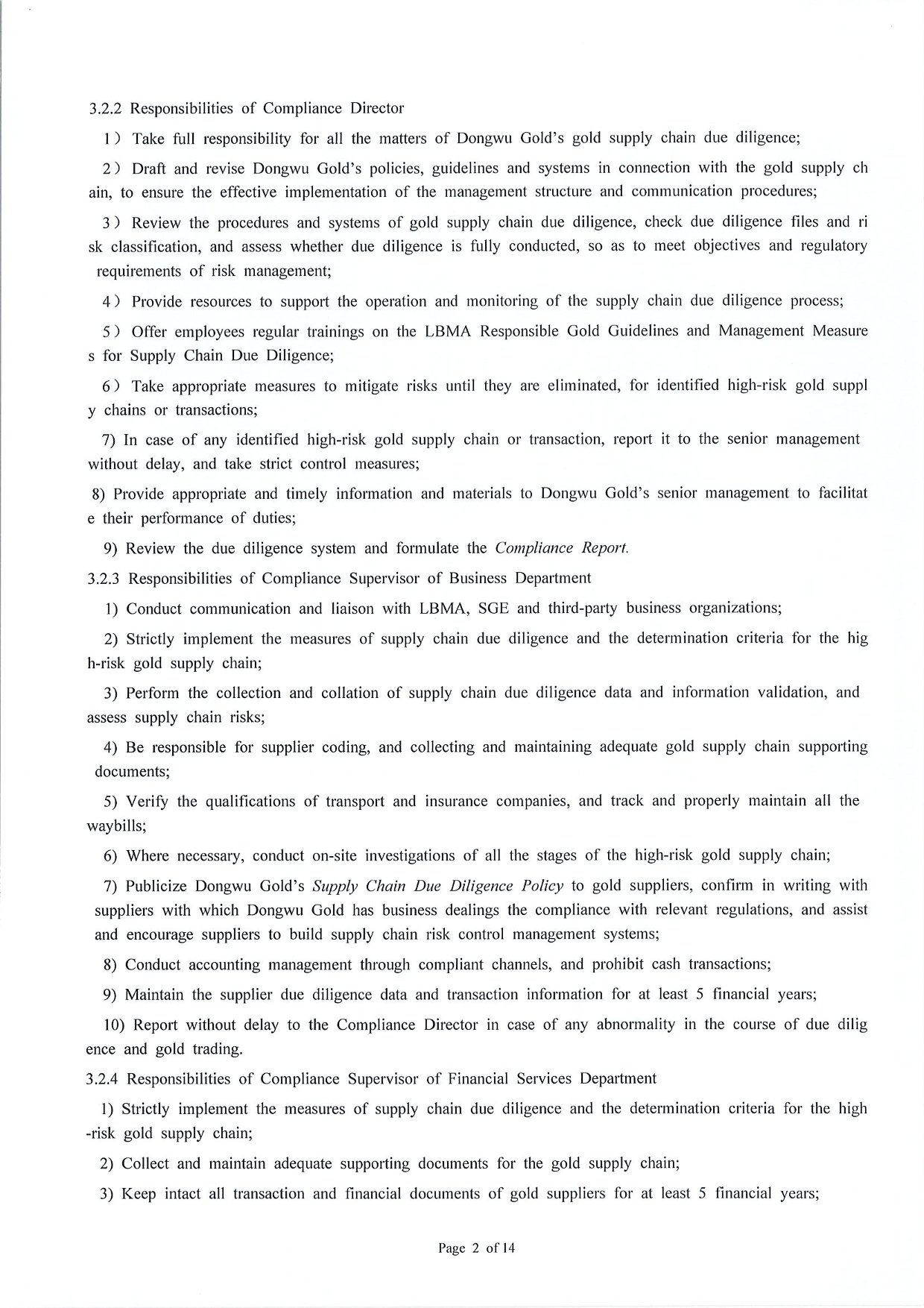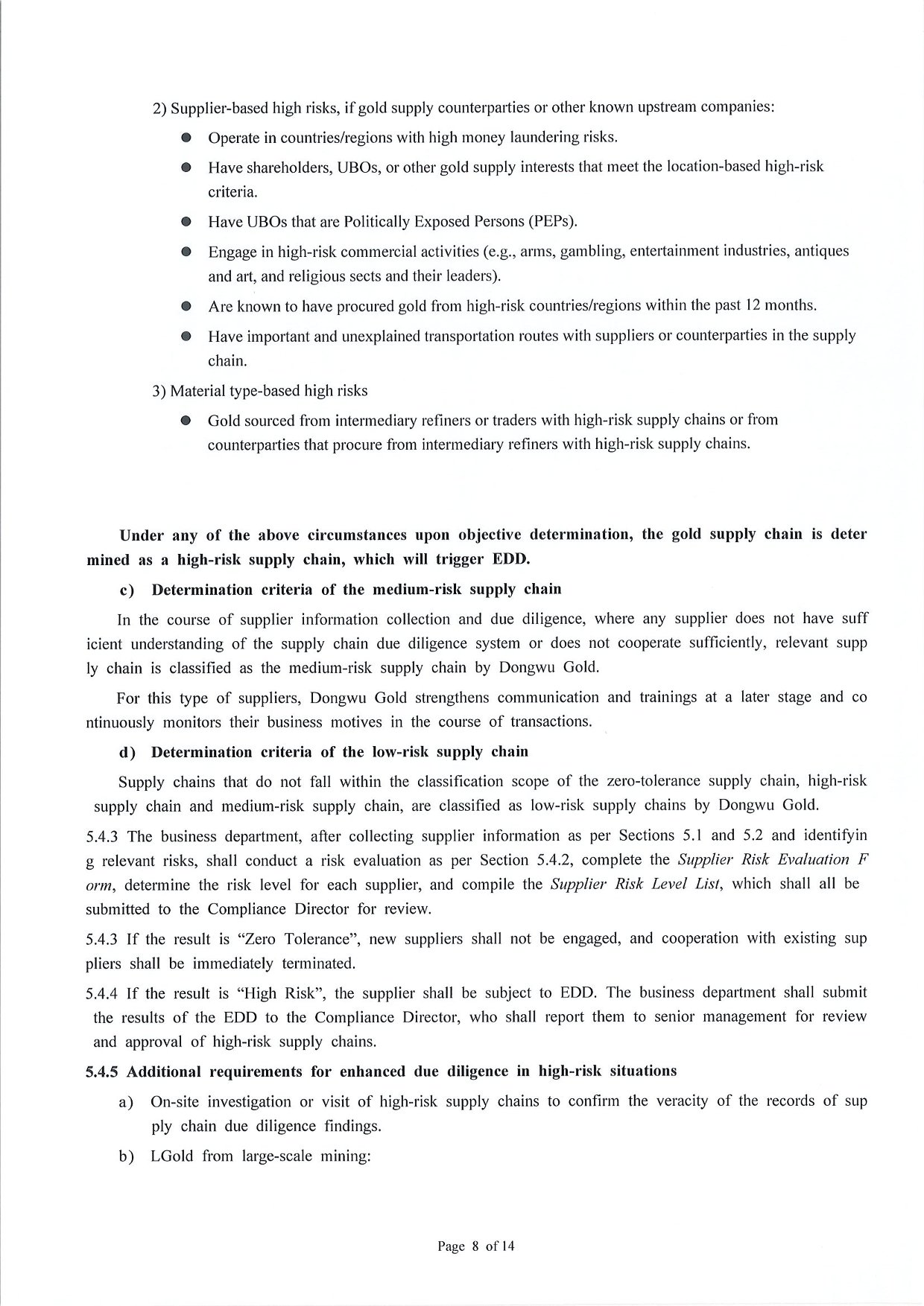 Management Measures for Supply Chain Due Diligence Dongwu Gold Group Co., Ltd(Version: G)